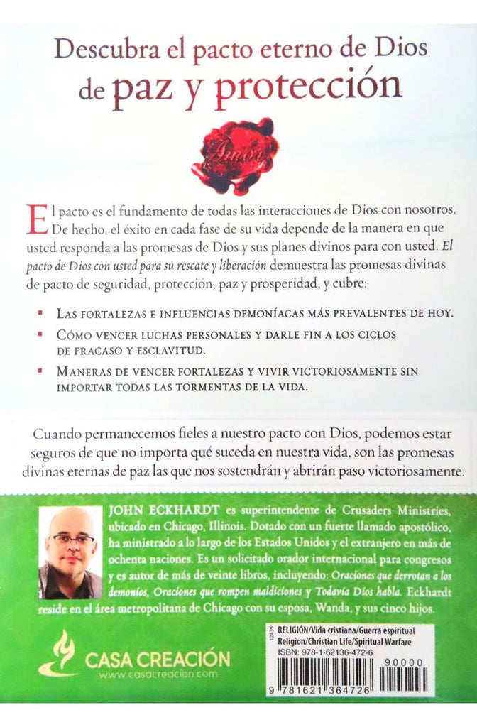 Descubra el pacto eterno de Dios de paz y protección El pacto es el fundamento de todas las interacciones de Dios con nosotros. de hecho, el éxito en cada parte de su vida depende de la manera en que usted responda a las promesas de Dios y sus planes divinos para con usted.El pacto de Dios con usted para su rescate y liberación demuestra las promesas divinas de pacto de seguridad, protección, paz y prosperidad, y cubre: · Las fortalezas e influencias demoníacas más prevalentes de hoy. · Cómo vencer luchas personales y darle fin a los ciclos de fracaso y esclavitud · Maneras de vencer fortalezas y vivir victoriosamente sin importar todas las tormentas de la vida. Cuando permanecemos fieles a nuestro pacto con Dios, podemos estar seguros de que no importa qué suceda en nuestra vida, son la promesas divinas eternas de paz las que nos sostendrán y abrirán paso victoriosamente.About the AuthorEl apóstol John Eckhardt es superintendente de Crusaders Ministries, ubicado en Chicago, Illinois. Dotado con un fuerte llamado apostólico, ha ministrado a lo largo de los Estados Unidos y el extranjero en más de ochenta naciones. Es un solicitado orador internacional para congresos y es autor de más de veinte libros, incluyendo:Oraciones que derrotan a los demonios,Oraciones que rompen maldiciones yTodavía Dios habla. Eckhardt reside en el área metropolitana de Chicago con su esposa, Wanda, y sus cinco hijos.