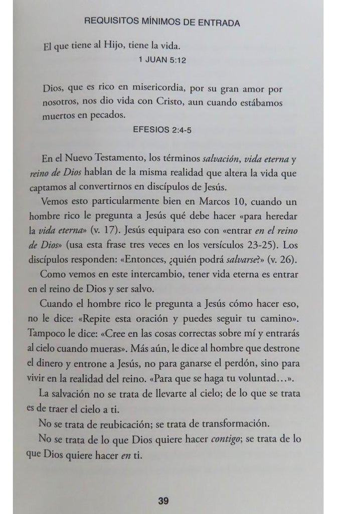 Un redescrubimiento radical de lo que Jesús enseñó acerca de la salvación, la eternidad y la llegada al mejor lugar La mayoría de nosotros pensamos en la eternidad como algo que se inicia después que morimos. Jesús, sin embargo, no habla de la eternidad en esos términos. Es más, Él define la ?vida eterna? una sola vez, con gran precisión y con un enfoque que se ha perdido en gran parte en la actualidad. Este libro examina su fascinante definición y las preguntas que surgen de ella. A radical rediscovery of what Jesus really taught about salvation, eternity, and getting to The Good Place Most of us think of eternity as something that begins after we die. However, Jesus doesn?t talk about eternity that way. In fact, Jesus defines ?eternal life? only once, with great precision, and in a way that has been largely lost in our day. This book looks at his riveting definition and the questions that flow from it.