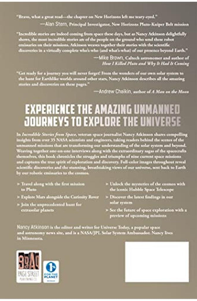 Experience the Amazing Journeys to Explore the UniverseIn Incredible Stories from Space, veteran space journalist Nancy Atkinson shares compelling insights from over 35 NASA scientists and engineers, taking readers behind the scenes of the robotic missions that are transforming our understanding of the solar system and beyond. Weaving together one-on-one interviews along with the extraordinary sagas of the spacecraft themselves, this book chronicles the struggles and triumphs of nine current space missions and captures the true spirit of exploration and discovery. Full color images throughout reveal scientific discoveries and the stunning, breathtaking views of our universe, sent back to Earth by our robotic emissaries to the cosmos.-Travel along with the first mission to Pluto-Explore Mars alongside the Curiosity Rover-Join the unprecedented hunt for extrasolar planets-Unlock the mysteries of the cosmos with the iconic Hubble Space Telescope-Discover the latest findings in our solar system-See the future of space exploration with a preview of upcoming missionsExperience the Amazing Journeys to Explore the UniverseIn Incredible Stories from Space, veteran space journalist Nancy Atkinson shares compelling insights from over 35 NASA scientists and engineers, taking readers behind the scenes of the robotic missions that are transforming our understanding of the solar system and beyond. Weaving together one-on-one interviews along with the extraordinary sagas of the spacecraft themselves, this book chronicles the struggles and triumphs of nine current space missions and captures the true spirit of exploration and discovery. Full color images throughout reveal scientific discoveries and the stunning, breathtaking views of our universe, sent back to Earth by our robotic emissaries to the cosmos.-Travel along with the first mission to Pluto-Explore Mars alongside the Curiosity Rover-Join the unprecedented hunt for extrasolar planets-Unlock the mysteries of the cosmos with the iconic Hubble Space Telescope-Discover the latest findings in our solar system-See the future of space exploration with a preview of upcoming missions