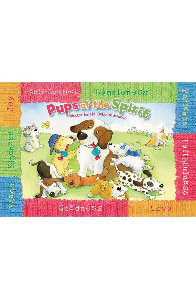 Pups of the Spirit puts a whimsical and child-friendly twist on the biblical Fruit of the Spirit attributes in this new board book illustrated by Deborah Melmon. Nine lovable canines romp through the pages of this picture book displaying important traits such as Love, Joy, Peace, Kindness, Patience, Goodness, Faithfulness, Gentleness, and Self-control. Max is filled with love and likes to greet people with a sloppy smooch; Pete the basset hound is so peaceful he falls asleep; Gigi is soft and gentle with God’s creatures.Poetic rhyming text and playful illustrations show the pups in various activities, demonstrating their qualities and helping young readers to learn these important spiritual traits.Pups of the Spirit puts a whimsical and child-friendly twist on the biblical Fruit of the Spirit attributes in this new board book illustrated by Deborah Melmon. Nine lovable canines romp through the pages of this picture book displaying important traits such as Love, Joy, Peace, Kindness, Patience, Goodness, Faithfulness, Gentleness, and Self-control. Max is filled with love and likes to greet people with a sloppy smooch; Pete the basset hound is so peaceful he falls asleep; Gigi is soft and gentle with God’s creatures.Poetic rhyming text and playful illustrations show the pups in various activities, demonstrating their qualities and helping young readers to learn these important spiritual traits.