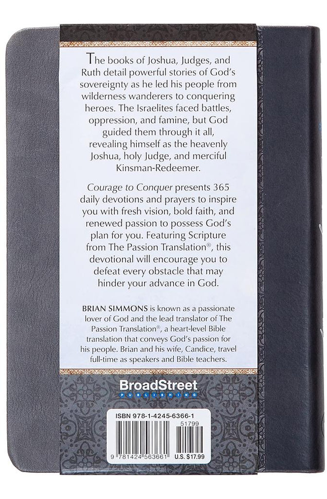 The books of Joshua, Judges, and Ruth detail powerful stories of God’s sovereignty as he led his people from wilderness wanderers to conquering heroes. The Israelites faced battles, oppression, and famine, but God guided them through it all, revealing himself as the heavenly Joshua, holy Judge, and merciful Kinsman-Redeemer.Courage to Conquer presents 365 daily devotions and prayers to inspire you with fresh vision, bold faith, and renewed passion to possess God’s plan for you. Featuring Scripture from The Passion Translation®, this devotional will encourage you to defeat every obstacle that may hinder your advance in God.The books of Joshua, Judges, and Ruth detail powerful stories of God’s sovereignty as he led his people from wilderness wanderers to conquering heroes. The Israelites faced battles, oppression, and famine, but God guided them through it all, revealing himself as the heavenly Joshua, holy Judge, and merciful Kinsman-Redeemer.Courage to Conquer presents 365 daily devotions and prayers to inspire you with fresh vision, bold faith, and renewed passion to possess God’s plan for you. Featuring Scripture from The Passion Translation®, this devotional will encourage you to defeat every obstacle that may hinder your advance in God.