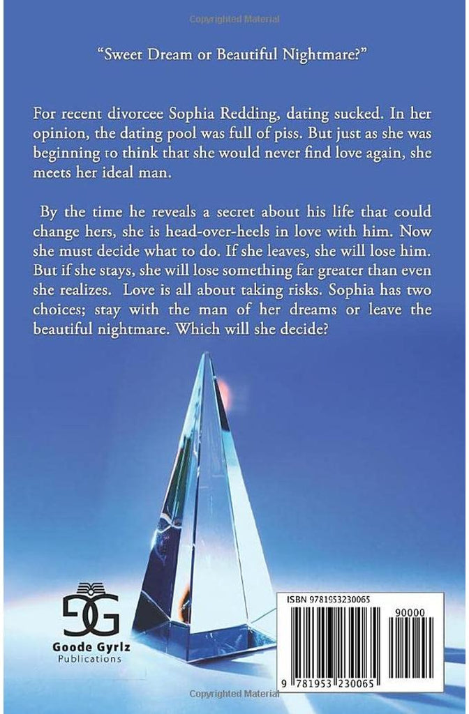 Sweet Dream or Beautiful Nightmare?For recent divorcee Sophia Redding, dating sucked. In her opinion, the dating pool was full of piss. But just as she was beginning to think that she would never find love again, she meets her ideal man.By the time he reveals a secret about his life that could change hers, she is head-over-heels in love with him. Now she must decide what to do. If she leaves, she will lose him. But if she stays, she will lose something far greater than even she realizes. Love is all about taking risks. Sophia has two choices; stay with the man of her dreams or leave the beautiful nightmare. Which will she decide?