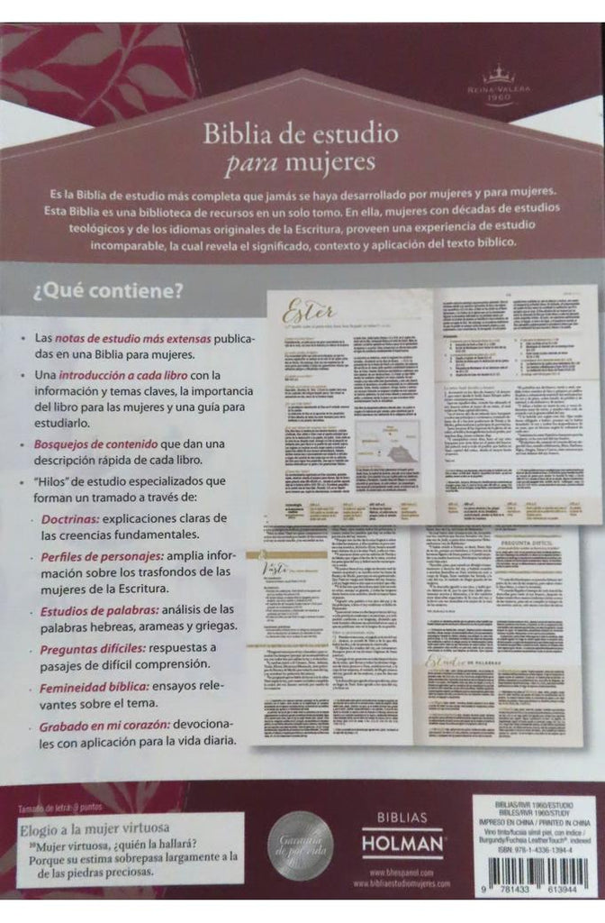 Biblia RVR 1960 de Estudio para Mujer Vinotinto Fucsia Símil Piel con Índice