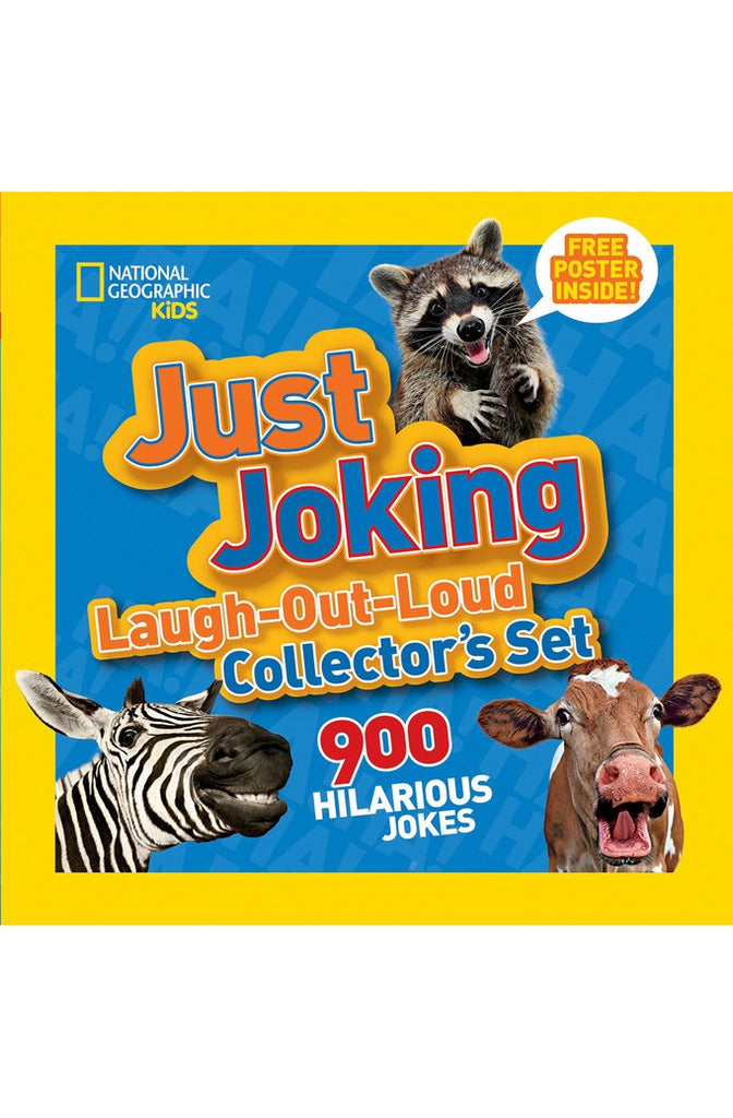 A collector’s set of three books with a total of 900 silly jokes that kids love, paired with photos of laughing animals and funny people!Based on material from the popular Just Joking department of National Geographic Kids-the nation's largest children's magazine-these books are packed with knock-knocks, tongue twisters, riddles, traditional question-and-answer jokes, and more. Presented in a colorful, photo-driven style, the Laugh-Out-Loud Collector's Set is great for tossing into a backpack to share with friends at school or camp. Plus, the included poster is perfect for a locker or bedroom! Featuring National Geographic Kids' signature square trim size and candy-colored palette, this hilarious party-starter is guaranteed to keep the laughs coming.What do you call a super-cool rodent?An awesome possum.What uses a gallon of paint and 100 brushes?A centipede getting a pedicure.