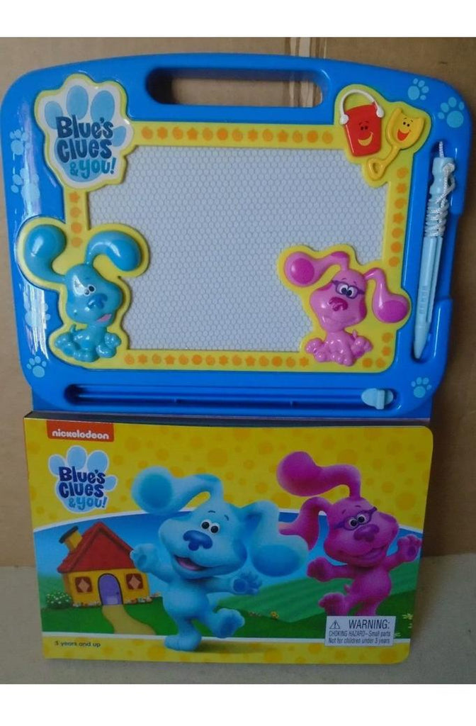 Blue's Clues & You! Learning Series Magnetic Drawing Board and Book Measures 8.75" by 13.25" Ages 3 and Up Learn how to write and draw letters, numbers, and a multitude of objects, all in the company of familiar faces! The Learning Series offers a creative experience that includes a fun story, step-by-step instructions, a magnetic pen, and an erasable magnetic drawing pad that can be used again and again! Josh loves to play Blue’s Clues. Try to draw Josh’s blue crayon and his Handy Dandy Guitar! Learn to draw Blue’s paw print, the thinking chair, and other simple objects with Josh, Blue, and her best friend, Magenta. Blue's Clues & You! Learning Series Magnetic Drawing Board and Book Measures 8.75" by 13.25" Ages 3 and Up Learn how to write and draw letters, numbers, and a multitude of objects, all in the company of familiar faces! The Learning Series offers a creative experience that includes a fun story, step-by-step instructions, a magnetic pen, and an erasable magnetic drawing pad that can be used again and again! Josh loves to play Blue’s Clues. Try to draw Josh’s blue crayon and his Handy Dandy Guitar! Learn to draw Blue’s paw print, the thinking chair, and other simple objects with Josh, Blue, and her best friend, Magenta.