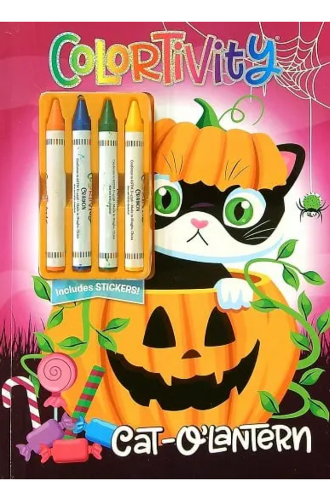 This spooky coloring and activity book includes 4 crayons.