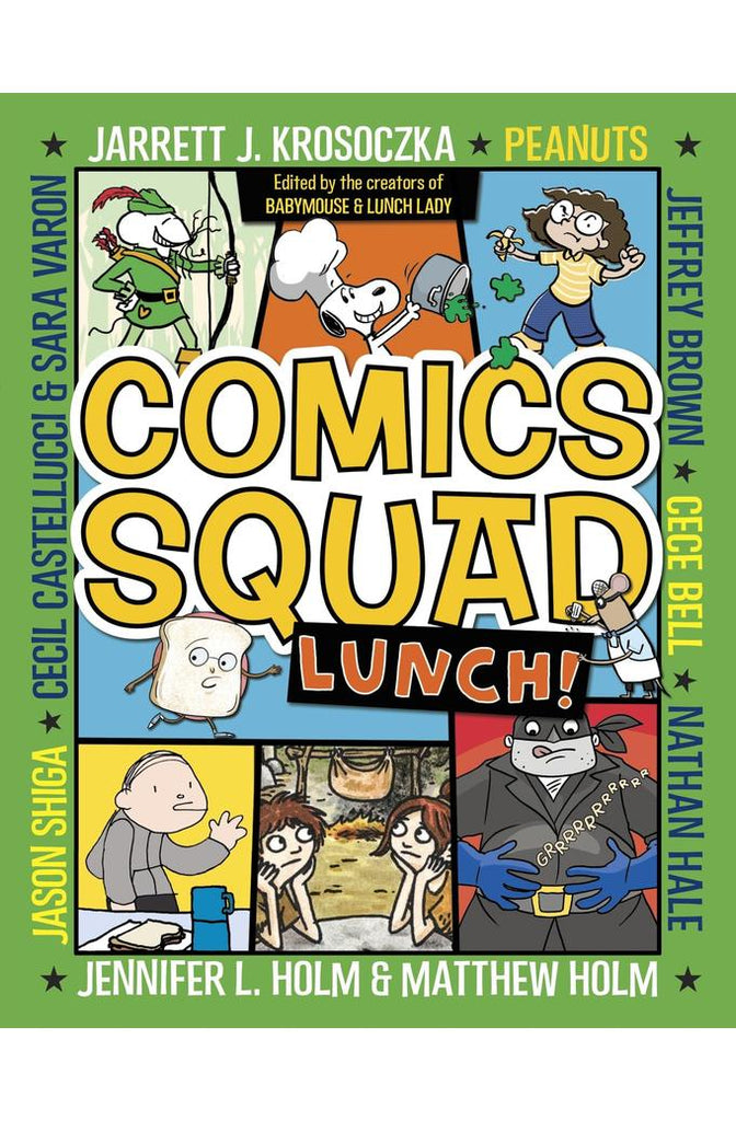 Calling all kidz! Do you like comics? Do you like laughing till milk comes out of your nose?! Look no further-do we have the book for you! All your favorite comic characters are right here in one book, including the Peanuts gang, Babymouse, and Lunch Lady. This all-star tribute to classic Sunday comics includes eight sidesplitting, action-packed stories about every kid’s favorite subject-LUNCH!Lunchtime can be fun, wild, yummy, or complete chaos! And in this second collection of comics, it is definitely hilarious.