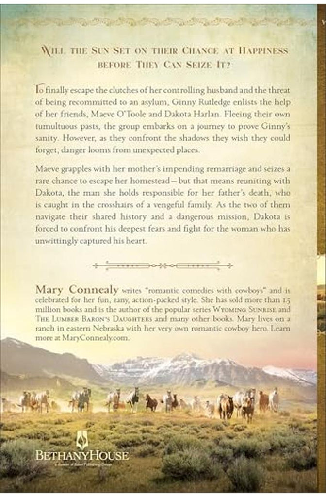 Will the sun set on their chance at happiness before they can seize it?To finally escape the clutches of her controlling husband and the threat of being recommitted to an asylum, Ginny Rutledge enlists the help of her friends, Maeve O'Toole and Dakota Harlan. Fleeing their own tumultuous pasts, the group embarks on a journey to prove Ginny's sanity. However, as they confront the shadows they wish they could forget, danger looms from unexpected places.Maeve grapples with her mother's impending remarriage and seizes a rare chance to escape her homestead--but that means reuniting with Dakota, the man she holds responsible for her father's death, who is caught in the crosshairs of a vengeful family. As the two of them navigate their shared history and a dangerous mission, Dakota is forced to confront his deepest fears and fight for the woman who has unwittingly captured his heart.