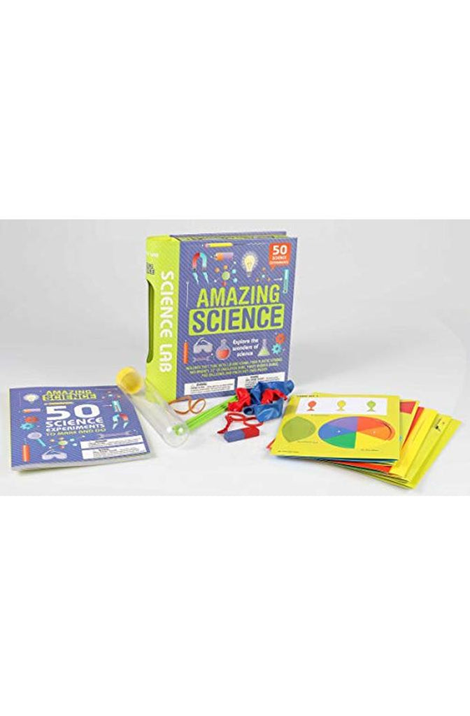 Learn by doing in this fun, interactive lab kit with more than 50 different experiments!Delve into astronomy, chemistry, weather, physics, geology, and more with interactive experiments in this fun, hands-on kit! Learn about materials and matter, sound and light, motion and gravity, electricity and magnetism, and chemical reactions as you make amazing things like rockets, a periscope, a lava lamp, a worm hotel, and soap-powered boats. How would you like to make a sound sandwich or a straw whistle? Split light into colors? Slice ice with a wire? Now you can with this kit that includes a 64-page illustrated instruction booklet, test tube, magnet, balloons, and more!