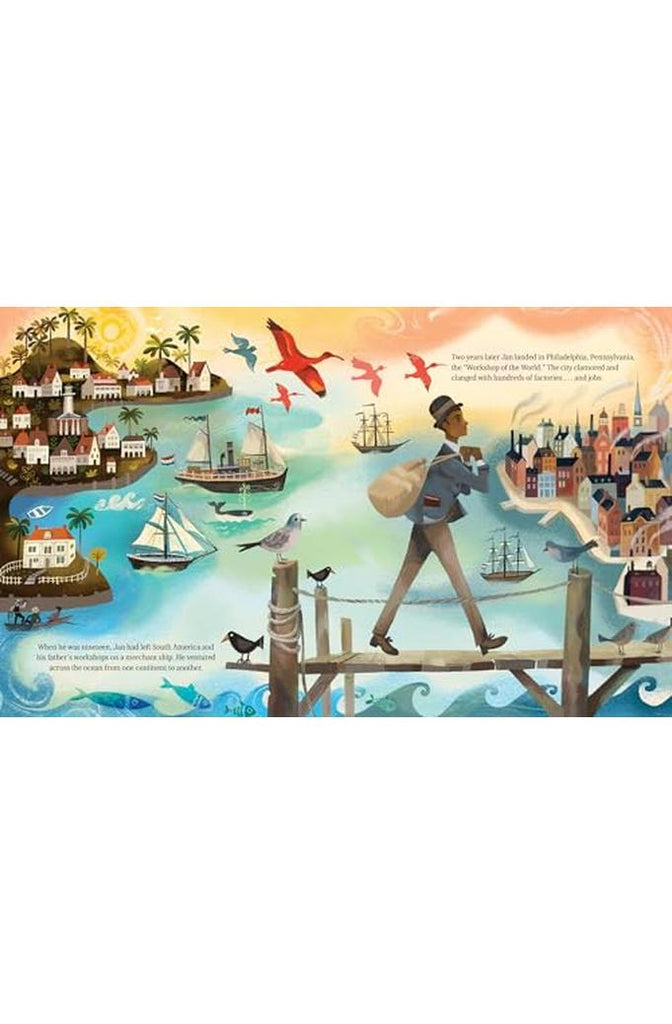 In 1873, at the age of 21, Jan Ernst Matzeliger immigrated to America, having left all that was familiar behind in South America. He arrived with hopes and dreams of a bright future in this new country. Though Jan had no formal training, he was highly skillful with tools and machinery, having worked in his father's mechanic shops. But no one wanted to hire a Black immigrant who didn't speak English. Yet Jan didn't give up. He finally got a job at a shoe factory. As Jan learned the process and craft of shoemaking, he envisioned a new machine, a lasting machine, that would help produce more shoes more efficiently. People scoffed at Jan's idea, telling him it wasn't possible. But he wasn't deterred. Despite many obstacles, after years of planning, drawing, and experimenting, Jan is finally ready to demonstrate his lasting machine. And his invention will change the shoe industry forever.The little-known story of Jan Matzeliger and his machine comes to life for young readers.
