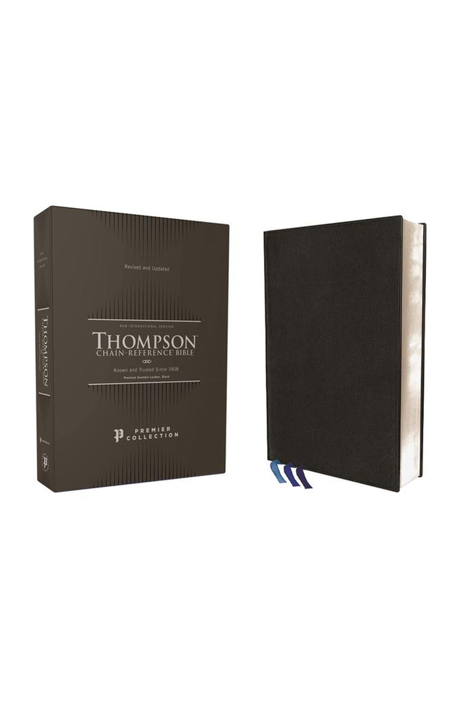 An easy-to-learn, easy-to-use tool for topical Bible studyWith over 100,000 references listed in the Bible’s margins, covering over 8,000 topics, the Thompson® Chain-Reference® Bible is an ideal tool for comprehensive topical study. The chain-reference system enables you to search the breadth of Scripture's teachings on thousands of topics and allows you to follow those topics throughout the entire Bible. Beloved and acclaimed for more than five generations, this unique reference Bible is unparalleled in its ability to enrich personal devotions, topical study, and sermon preparation.The Thompson Chain-Reference Bible also offers a library of additional study resources, including biographical sketches, illustrated studies, maps, and charts. The alphabetical and numerical indexes make it easy to find any topic you wish to study, explore, or speak about. These tools together allow readers to interpret the Bible using related scripture passages rather than consulting a commentary.The NIV Thompson Chain-Reference Bible is printed in Zondervan’s exclusive NIV Comfort Print® typeface for easy reading. Expertly designed specifically to be used for the New International Version (NIV) text, Comfort Print offers an easier reading experience that complements the most widely read modern-English Bible translation. It also features a fresh, two-color design that preserves the original look of the chain-reference system, while making each page cleaner and easier to read.Premier Collection Bibles are bound in the softest, finest goatskin available and feature quality finishes such as beautiful art gilding, durable edge lining, and three thick ribbon markers. Encased in a durable two-piece box and elegantly wrapped in protective paper, each Premier Collection Bible is safely secured and packaged with careful attention to detail.Features: Complete text of the accurate, readable, and clear New International Version (NIV) Easy-to-understand chain-reference system with over 100,000 topical references Alphabetical and numerical indexes highlight study materials for over 8,000 topics, each with its own topic number, for exhaustive topical study An extensive study resource section includes biographical sketches, illustrated studies of the Bible, a concordance, Bible harmonies, and many other helpful study tools Fresh, two-color page design 66 book introductions 16-page full-color map section with map index Black letter edition Hand-bound in a supple goatskin leather cover with raised spine hubs Premium European Bible paper, 36 GSM Presentation page for gift-giving Art gilded page edges Three double-sided 3/8-inch wide satin ribbon markers Exclusive Zondervan NIV Comfort Print typeface 9.5-point print sizeIn 1890, creator of the Thompson Chain-Reference system, Dr. Frank Charles Thompson, began working on the “chain-links” that became the foundation of the unique Thompson referencing system. The Kirkbride Bible Company, Inc., published the first complete Thompson Chain-Reference Bible in 1908 and continued that legacy for over 100 years, adding visual, maps, archeological insights, and over 100,000 references. Now, Zondervan Bibles is excited to take the Thompson Chain-Reference Bible forward, and to continue to steward this important brand with new revised and expanded editions.An easy-to-learn, easy-to-use tool for topical Bible studyWith over 100,000 references listed in the Bible’s margins, covering over 8,000 topics, the Thompson® Chain-Reference® Bible is an ideal tool for comprehensive topical study. The chain-reference system enables you to search the breadth of Scripture's teachings on thousands of topics and allows you to follow those topics throughout the entire Bible. Beloved and acclaimed for more than five generations, this unique reference Bible is unparalleled in its ability to enrich personal devotions, topical study, and sermon preparation.The Thompson Chain-Reference Bible also offers a library of additional study resources, including biographical sketches, illustrated studies, maps, and charts. The alphabetical and numerical indexes make it easy to find any topic you wish to study, explore, or speak about. These tools together allow readers to interpret the Bible using related scripture passages rather than consulting a commentary.The NIV Thompson Chain-Reference Bible is printed in Zondervan’s exclusive NIV Comfort Print® typeface for easy reading. Expertly designed specifically to be used for the New International Version (NIV) text, Comfort Print offers an easier reading experience that complements the most widely read modern-English Bible translation. It also features a fresh, two-color design that preserves the original look of the chain-reference system, while making each page cleaner and easier to read.Premier Collection Bibles are bound in the softest, finest goatskin available and feature quality finishes such as beautiful art gilding, durable edge lining, and three thick ribbon markers. Encased in a durable two-piece box and elegantly wrapped in protective paper, each Premier Collection Bible is safely secured and packaged with careful attention to detail.Features: Complete text of the accurate, readable, and clear New International Version (NIV) Easy-to-understand chain-reference system with over 100,000 topical references Alphabetical and numerical indexes highlight study materials for over 8,000 topics, each with its own topic number, for exhaustive topical study An extensive study resource section includes biographical sketches, illustrated studies of the Bible, a concordance, Bible harmonies, and many other helpful study tools Fresh, two-color page design 66 book introductions 16-page full-color map section with map index Black letter edition Hand-bound in a supple goatskin leather cover with raised spine hubs Premium European Bible paper, 36 GSM Presentation page for gift-giving Art gilded page edges Three double-sided 3/8-inch wide satin ribbon markers Exclus