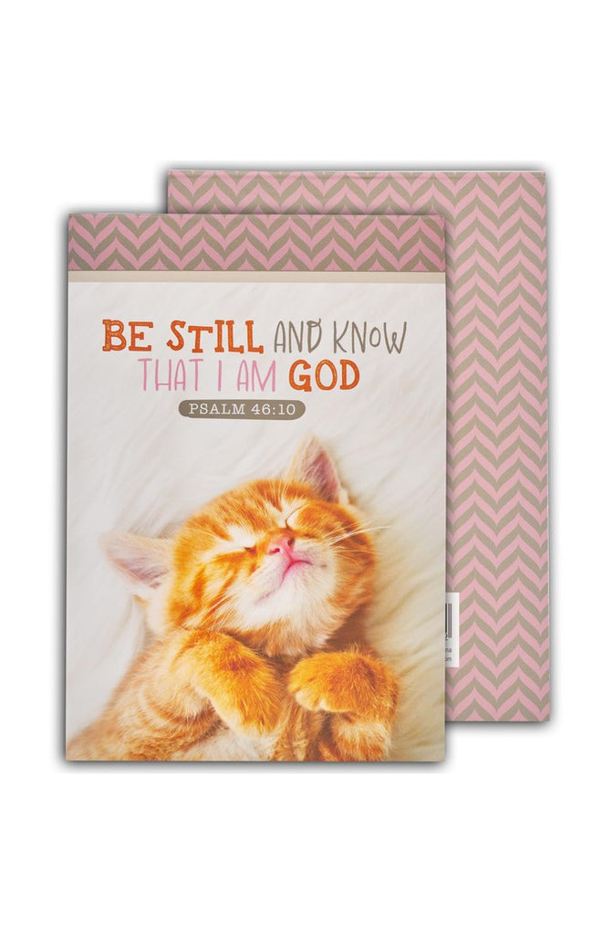 Jot down your last thoughts for the day on the pages of the Be Still and Know Kitten Notepad, close your eyes, and rest, knowing that God is in control no matter what is on your to-do list.
