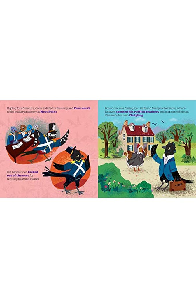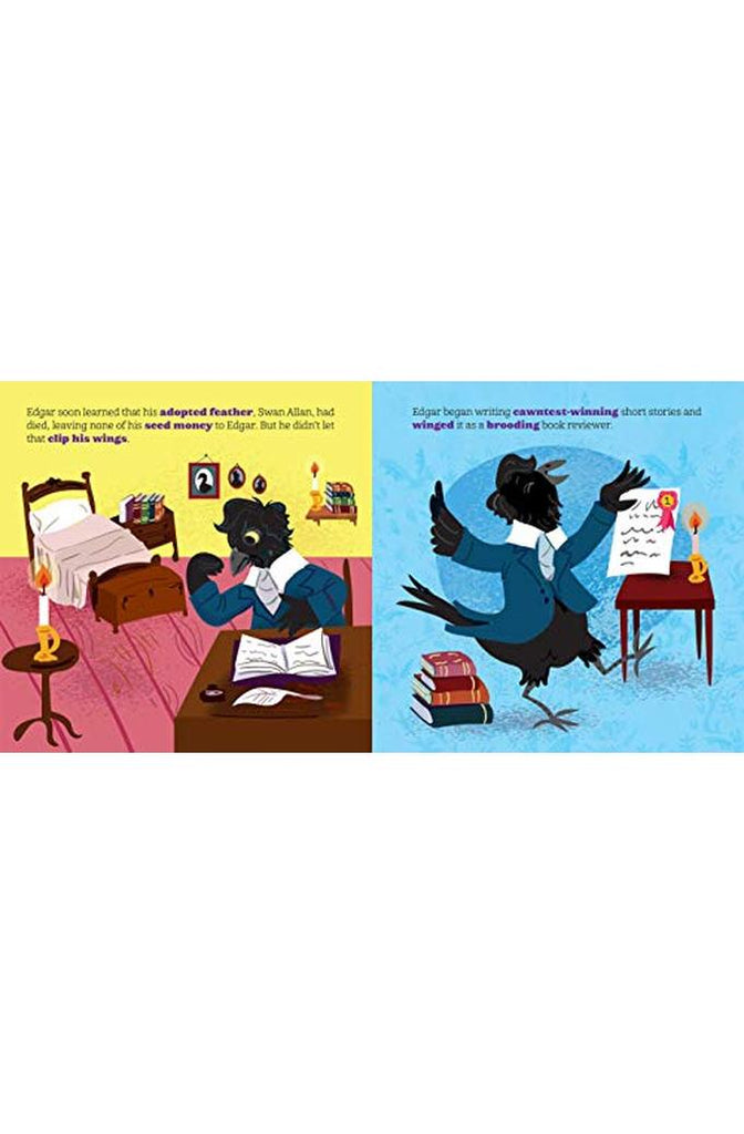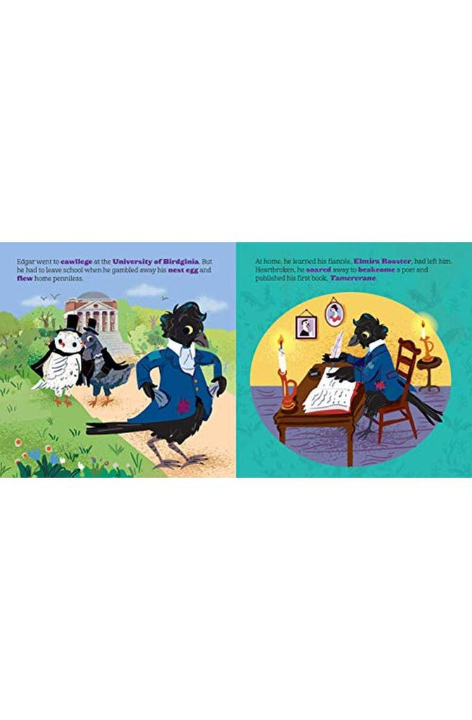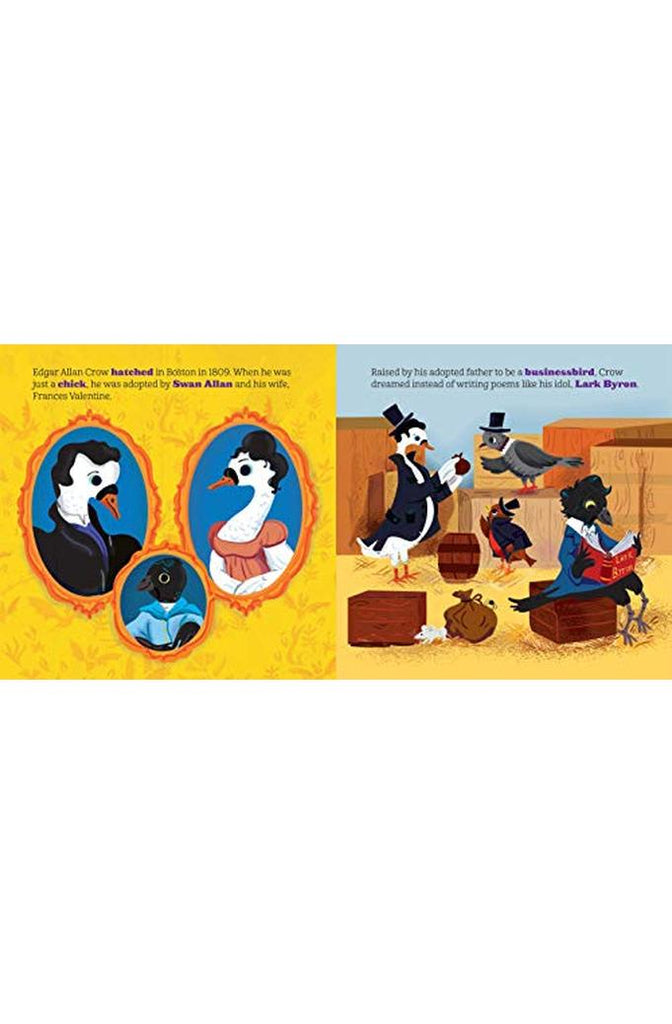Introduce babies to the master of the macawbre in this adorable biographical board book with an animalistic twist!Meet one of history’s greatest figures in this adorable board book with an animal twist! A group of crows is called a murder, and no one knows murder quite like the “master of macawbre,” Edgar Allan Crow. With a feather on the pulse of poetry and the horror genre, he made lasting contributions to American literature that inspired countless others. With hilarious puns and colorful illustrations, this book brings his literary legacy to life!