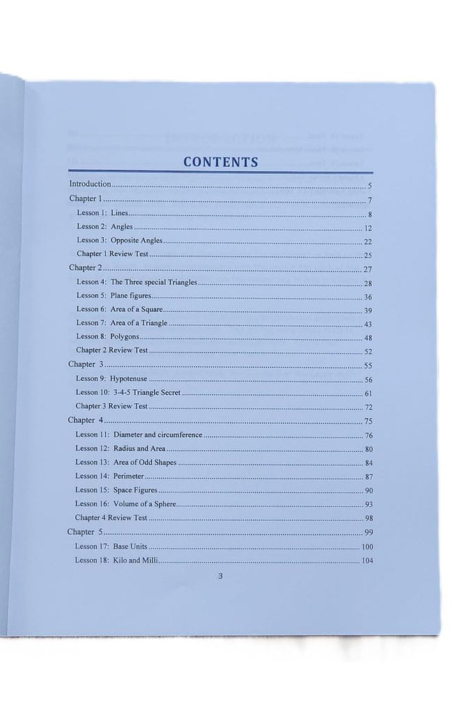 Volume 4 is what sets us apart from other math curricula. Many students get lost in math when trying to learn fractions and pi in the same year. That's why we waited until after pre-algebra to introduce topics such as circumference and area. It's only fair to teach a student how to use variables in a math equation before giving them a formula such as A = 1/2 bh. This volume is the shortest in the Learn Math Fast series. Most teenagers can complete it in about one month. The lessons are short and so are the worksheets. The full solutions are in the back of the book, so students can see where they went wrong.